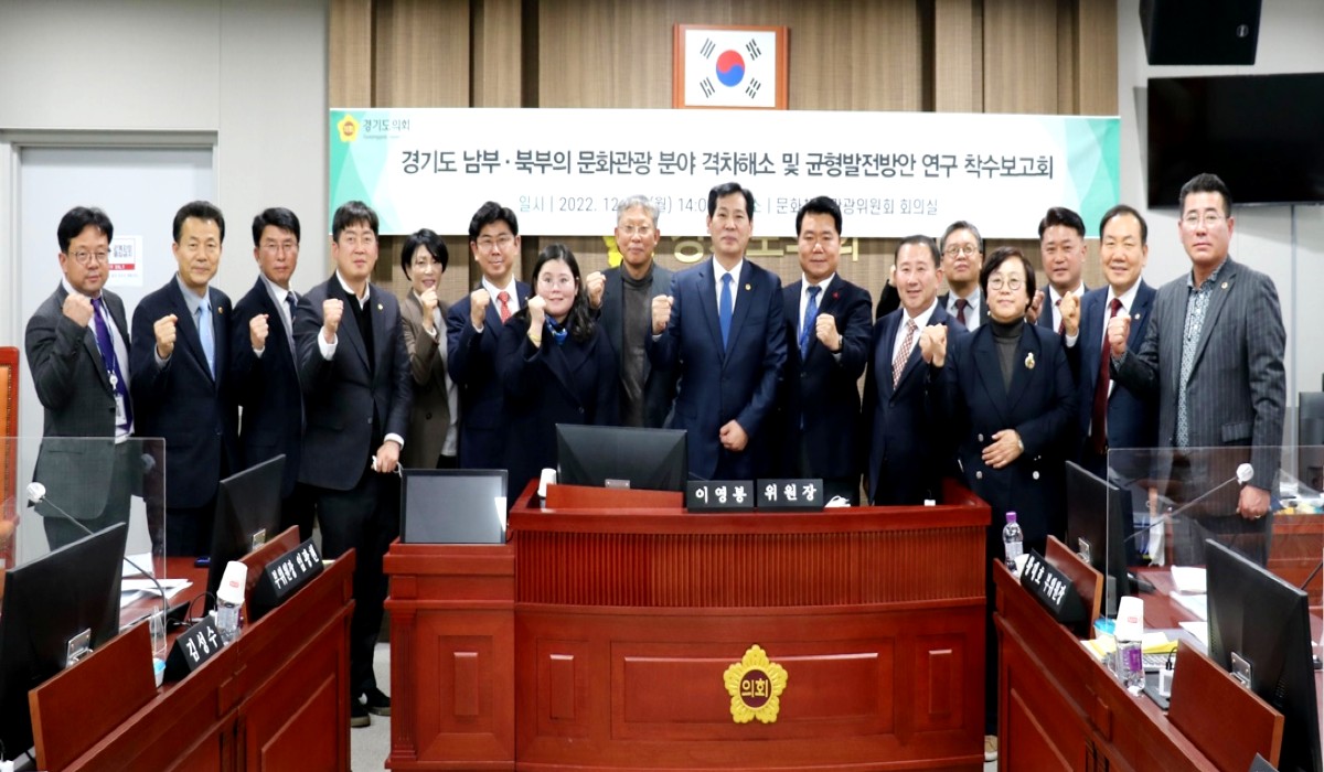 경기도의회 문화체육관광연구회(회장 이영봉, 더민주 의정부2)는 12일 15시 문화체육관광위원회 회의실에서, ‘경기도 남부·북부의 문화관광 분야 격차해소 및 균형발전방안 연구’ 착수보고회를 개최했다.