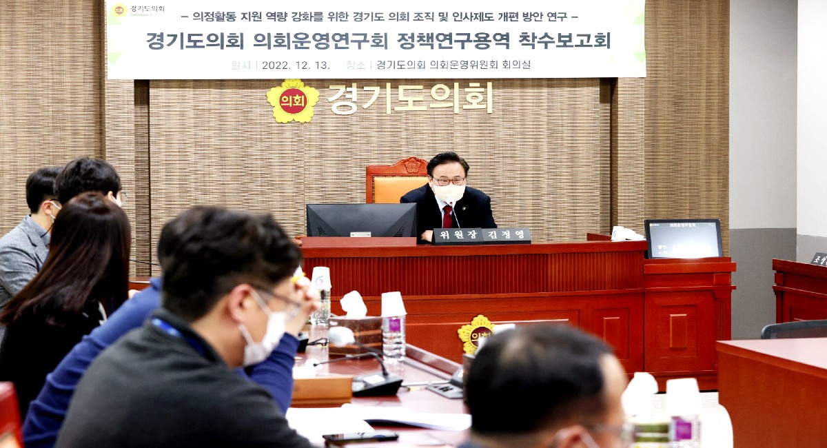 경기도의회 의회운영연구회[회장 김정영 위원장(국민의힘, 의정부1)]는 지난 13일(화) 의회운영위원회 회의실에서, ‘지방의회 인사권 독립 이후 의정활동 지원 역량 강화를 위한 경기도의회 조직 및 인사제도 개편 방안 연구’ 착수보고회를 개최했다.