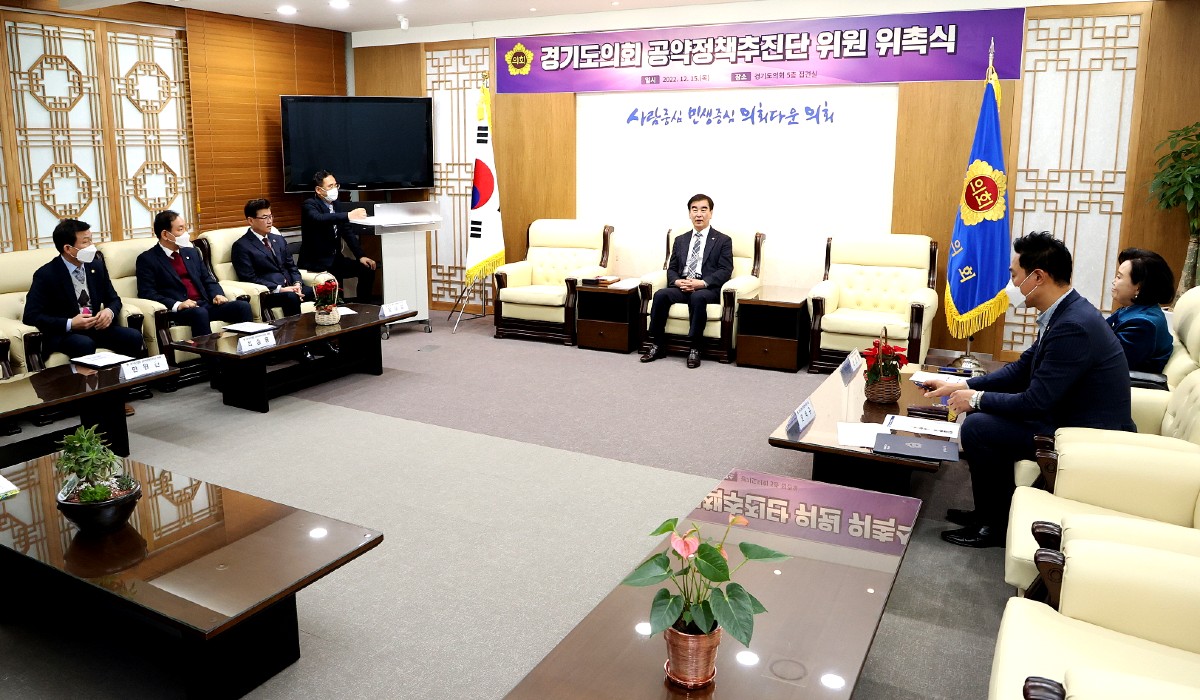 의장 접견실에서 진행된 위촉식에는 김태희 의원을 제외한 위원진과 공동단장을 맡은 윤태길(국민의힘, 하남1)·정윤경(더민주, 군포1) 의원이 참석했다.