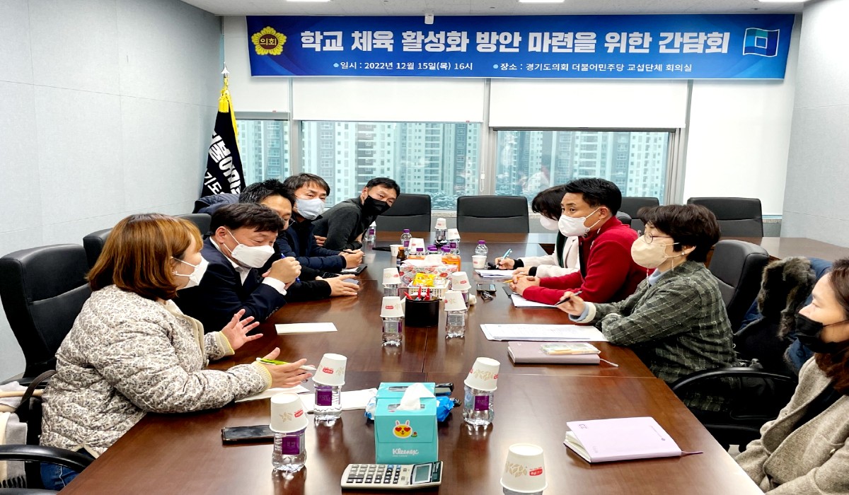 경기도의회 더불어민주당(남종섭 대표의원, 용인3)은 15일(목) 더불어민주당 대표의원실에서, 학교체육 활성화 방안 마련을 위한 간담회를 개최했다.