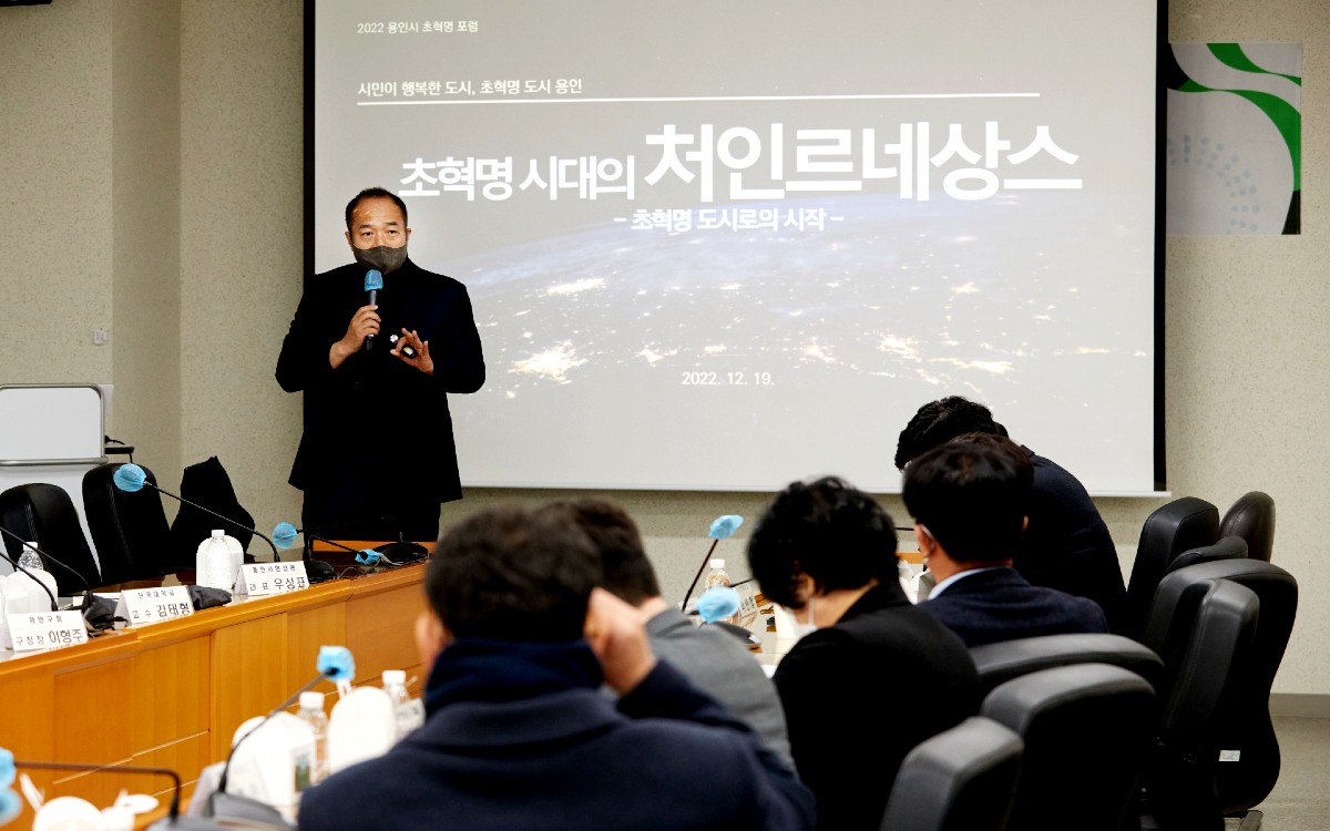 용인특례시의회 의원연구단체 「처인르네상스」(대표 김상수)는 19일 오후 2시 대회의실에서 우상표 용인시민신문 대표, 김태형 단국대학교 대학원 데이터지식서비스공학과 교수, 이형주 처인구청장을 초청해 연구 세미나를 진행했다.