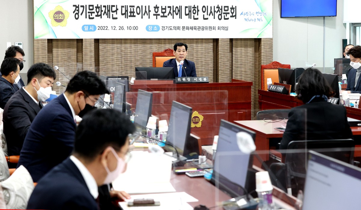 이번 인사청문회는 지난 11월 21일 경기도·경기도의회가 체결한 ‘산하기관장 인사청문 업무협약’에 따라, 12월 16일 도가 경기문화재단 대표이사 후보자에 대한 인사청문을 요청하여, 정책역량 검증이 실시된 것이다.