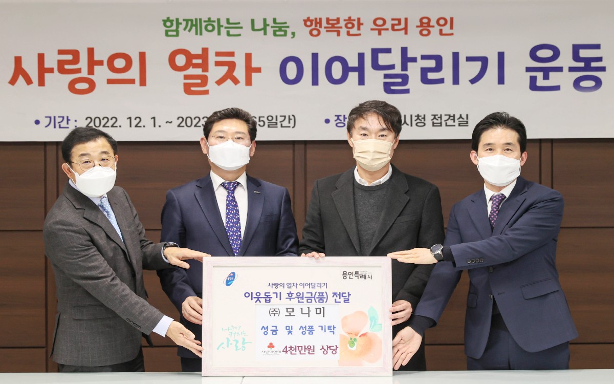 용인특례시(시장 이상일)는 3일 관내 기업 2곳이, 시의 연말연시 이웃돕기 운동 ‘사랑의 열차 이어달리기’에 성금과 문구류를 기탁했다고 밝혔다.