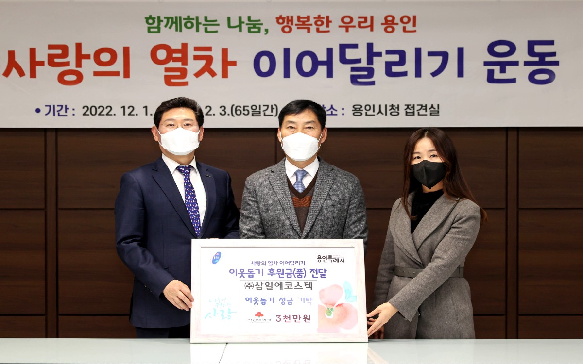 이날 ㈜삼일에코스텍 조석민 대표 등 관계자 2명이, 이상일 시장실을 찾아와 성금 3000만원을 전달했다.