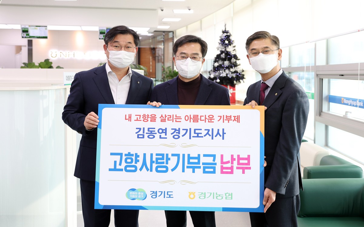 김동연 지사는 6일 오후 경기도청사에 위치한 농협을 방문해, 도내 남부 오산시와 북부 구리시, 고향인 충북 음성군과 배우자 고향인 충남 천안시 등 4개 지역에 기부금을 전달하고, 지역 균형 발전과 지역경제 활성화에 대한 희망의 메시지를 전했다.