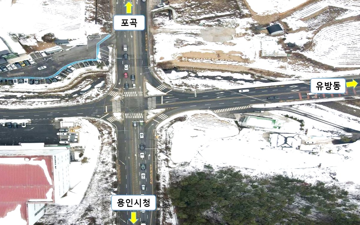 용인특례시(시장 이상일)가 처인구 유방동 775-2번지 일원, 유림1교차로의 직진 차로를 2개로 확장해 차량 흐름을 원활하게 개선한다고 10일 밝혔다.