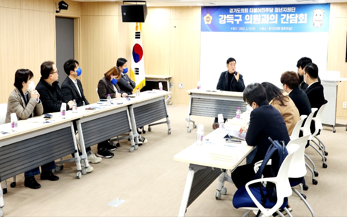 경기도의회 더불어민주당 청년지원단(김태희 단장, 안산2)이 11일(수) 경기도의회 중회의실에서, 강득구 국회의원과의 간담회 시간을 가졌다.