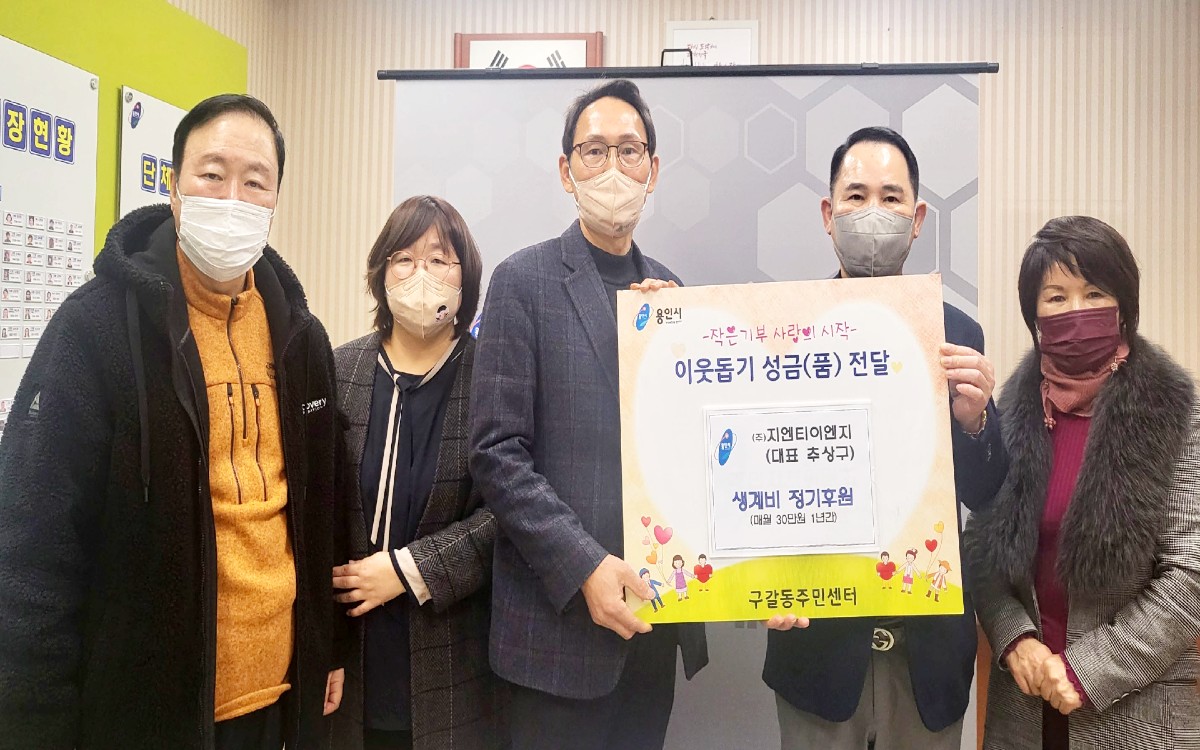 용인특례시 기흥구 구갈동은 지난 11일 ㈜지엔티이엔지와 내년 1월까지 1년간 관내 한부모 가정 정기후원 협약을 체결했다.