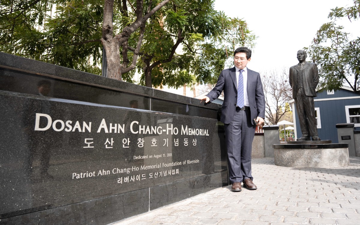 이 시장은 이어 플러튼 동쪽에 위치한 리버사이드시로 이동해, 시청 앞에 서 있는 독립운동가 도산(島山) 안창호 선생 동상을 찾았다.