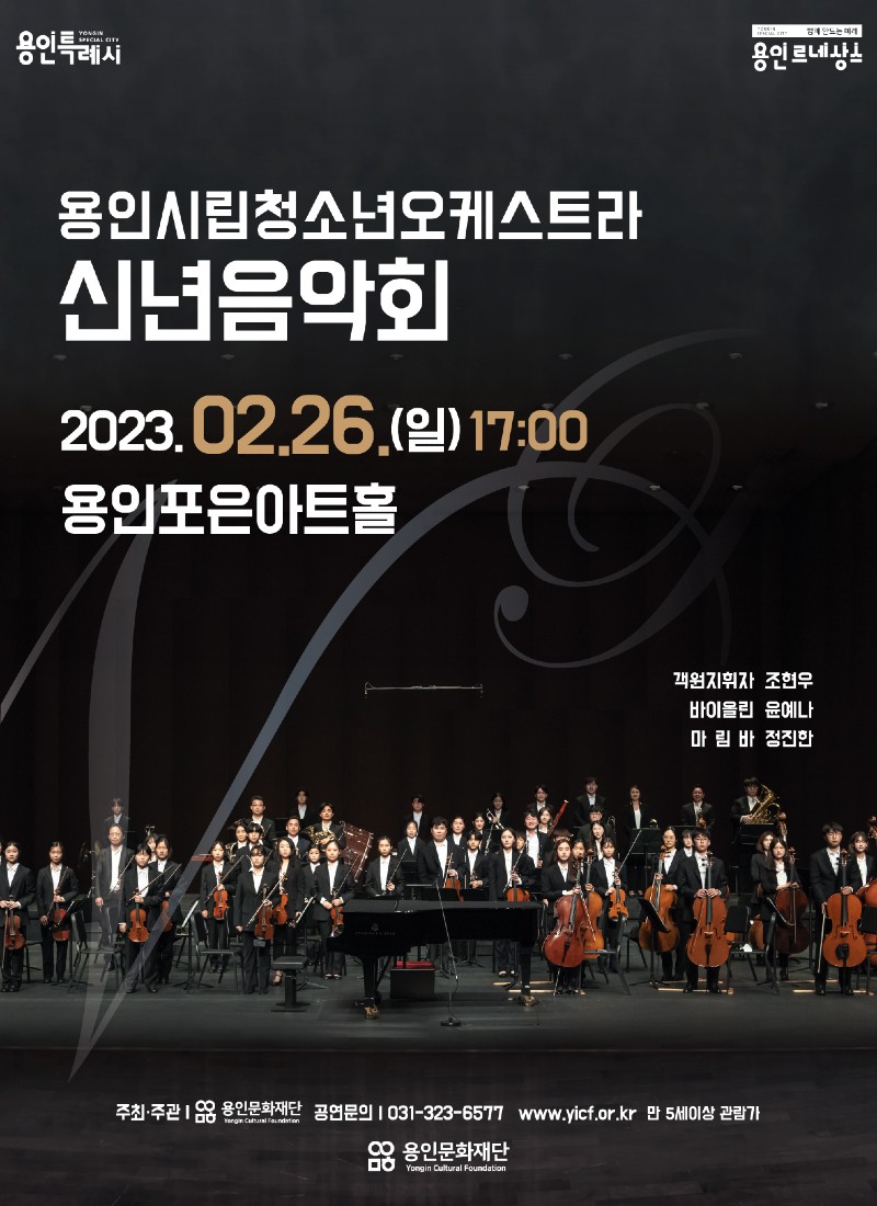 (재)용인문화재단(이사장 이상일) 용인시립청소년오케스트라는, 2023년 계묘년(癸卯年) 새해를 맞이하여 오는 2월 26일 17시 용인포은아트홀에서 신년음악회를 개최한다.