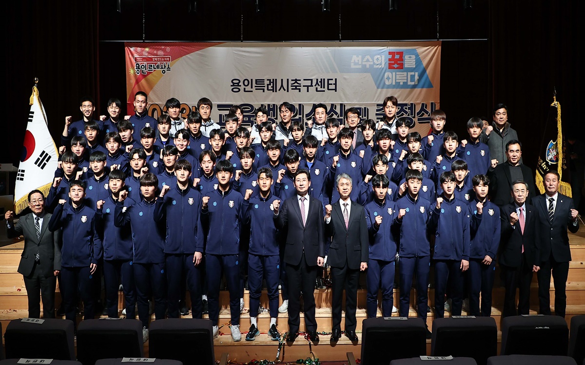 이상일 용인특례시장은 "용인특례시축구센터에 초등학교, 중학교, 고등학교의 훌륭한 유망주 51명이 교육생으로 입소한 것을 참으로 기쁘게 생각하며 환영한다“며 ”오늘 이날이 있도록, 뒷바라지 해주신 부모님들과 선생님들께 감사 인사를 드린다"고 말했다.