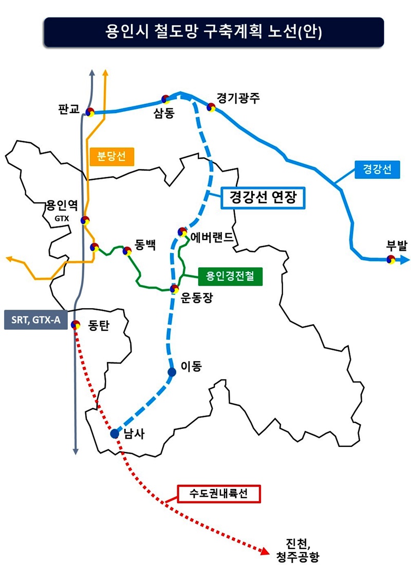 시는 처인지역 철도망 확충으로 시의 균형발전을 도모하기 위해, 경기도 광주시 삼동역에서 철도를 분기해, 용인 모현~이동~남사까지 연장하는 계획을 추진하고 있다.