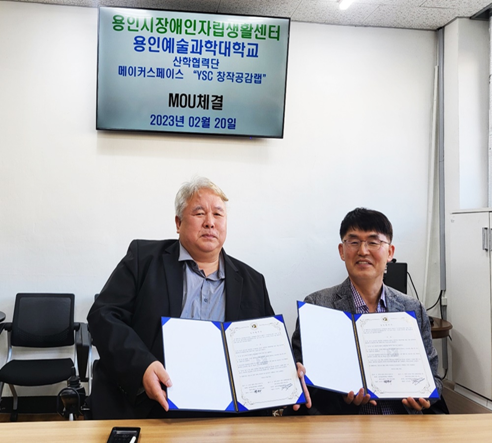 용인시장애인자립생활센터(센터장 김정태)와,용인예술과학대학교 산학협력단 메이커스페이스 “YSC 창작공감랩”(대표 권양구)은 상호 협력을 위한 업무협약을 2월 20일 체결하였다고 전했다.