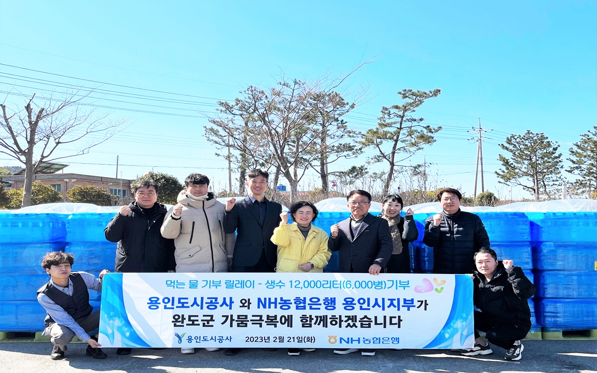 행정안전부가 주관하는 남부 도서지역 ‘먹는 물 기부 릴레이 캠페인’ 일환으로 이루어진 이번 기부는 용인도시공사와 공사 노동조합, 사내 봉사단, 그리고 농협은행 용인시지부가 합동으로 참여했다.
