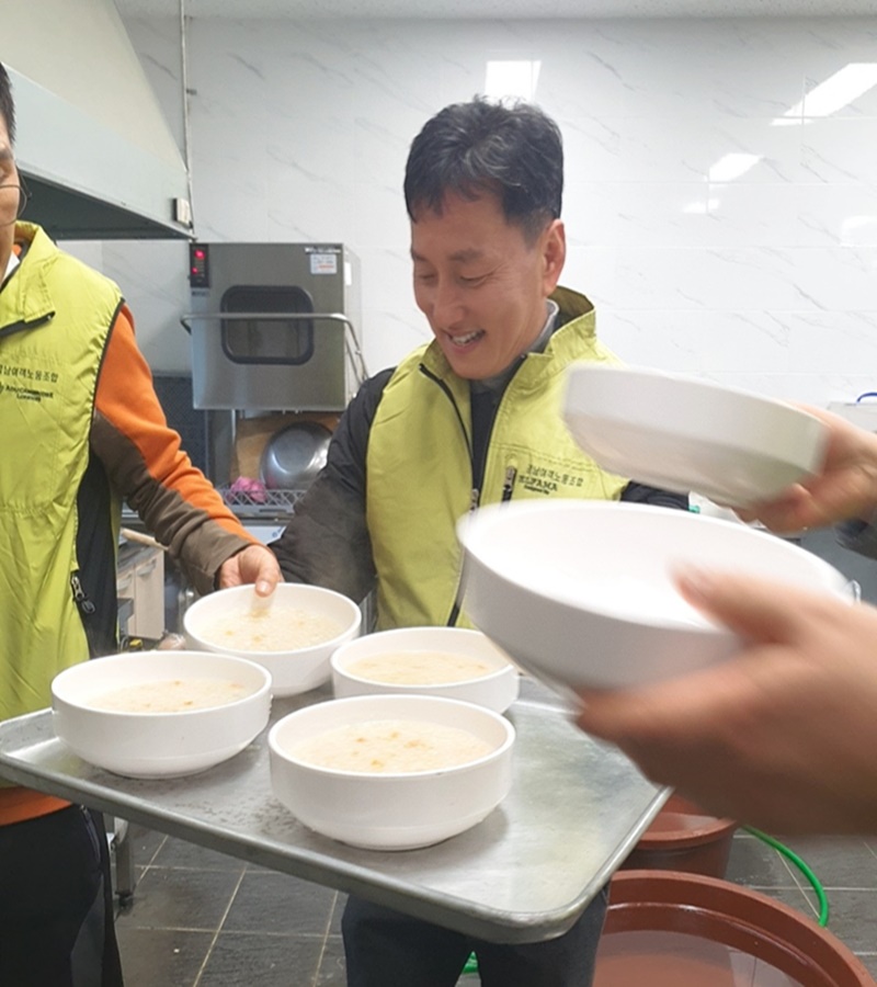 날씨가 추운만큼 어르신들의 건강을 위하여, 건강식 닭죽을 봉사회원들이 직접 만들어서 제공하며, 장애인 어르신들에게 한끼의 즐거움을 제공하였다.