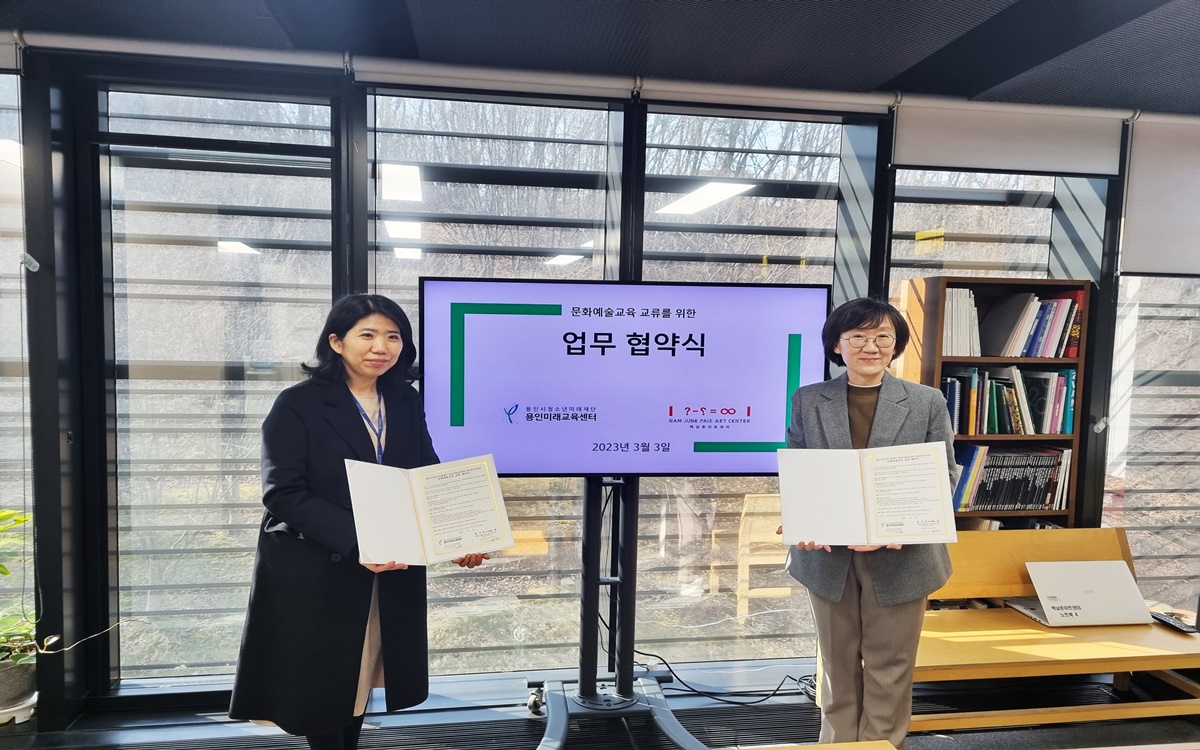 이날 협약식은 용인미래교육센터 김지연 센터장과 백남준아트센터의 김성은 관장등이 참석한 가운데, 양 기관의 예술문화교육 자원을 토대로, 지역 내 청소년들의 문화예술분야의 다양한 참여를 지원하고자 상호 협력하기로 합의하였다.