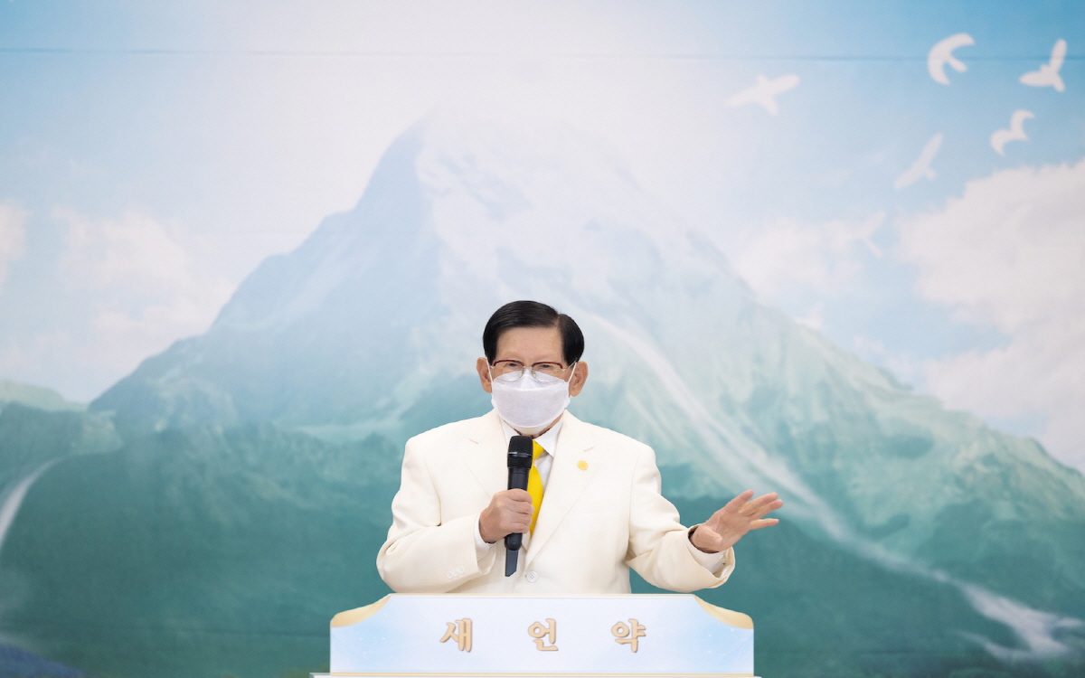 이만희 총회장은 12일 진행된 창립기념 예배를 통해 성경의 예언대로 창조된 신천지예수교회의 역사와 증거 하는, 요한계시록의 실체를 확인해 줄 것을 요청하고 성도들에게는 걸어 다니는 성경책이 될 것을 당부했다. ,