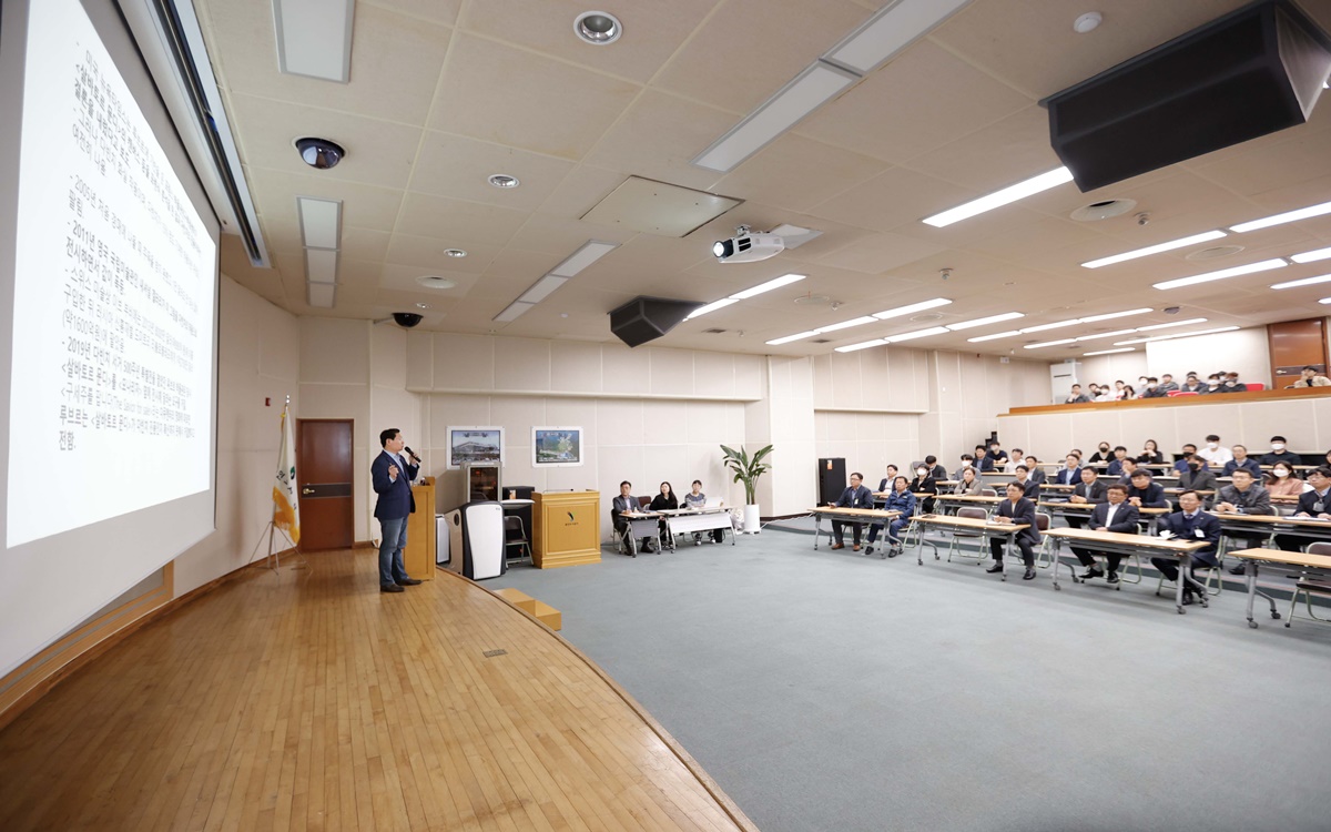 그는 특강에 앞서 “남사·이동에 215만평 규모의 시스템반도체 국가첨단산업단지가 조성되는데, 여러모로 시와 공사가 서로 협력해 이뤄나가야 할 일들이 많을 것”이라며 “배후단지 조성, 도로·철도 등 인프라 확충 등과 관련해 공사가 연구와 검토를 많이 해주시고 시에 많은 지혜를 주시기 바란다”고 말했다.