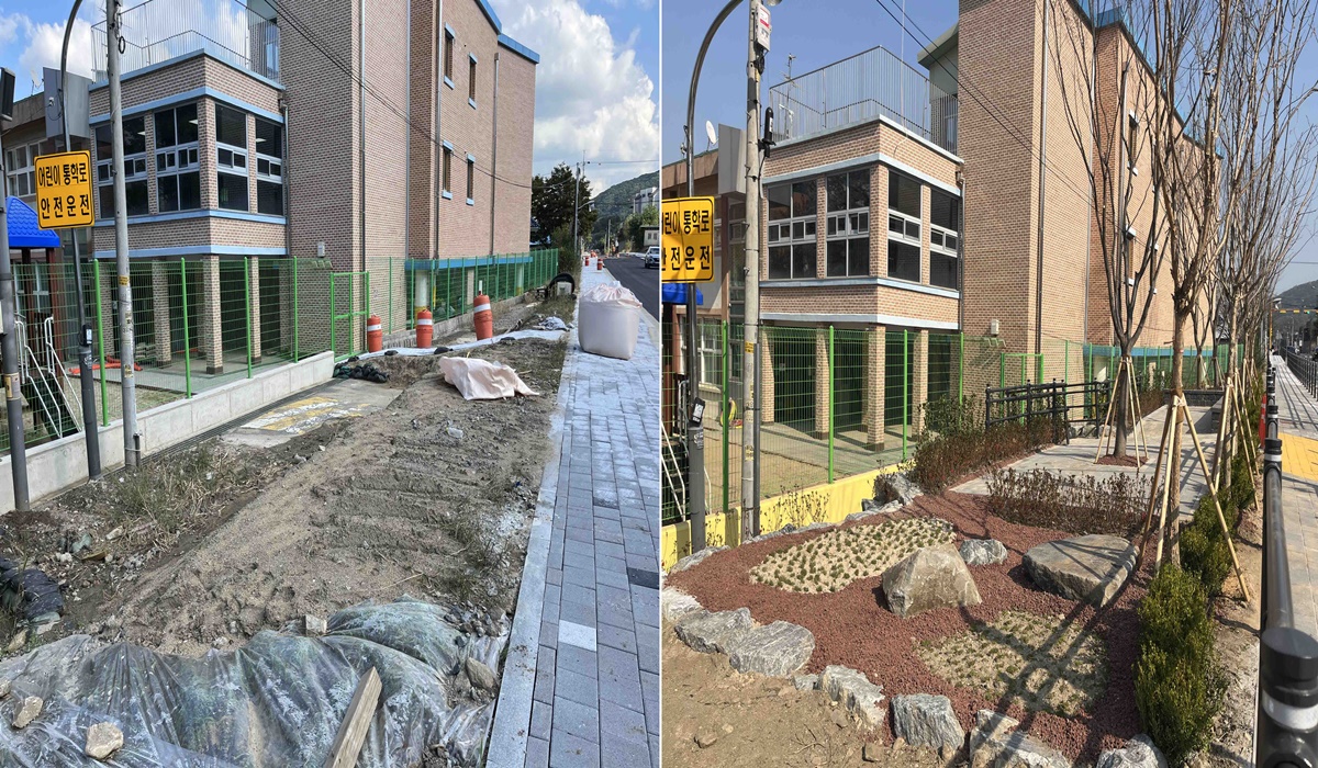 도로변 미정비 녹지였던 자투리 공간 220㎡을 탈바꿈해, 학생과 주민들이 여유있게 쉴 수 있는 휴게공간을 선물한 것이다.