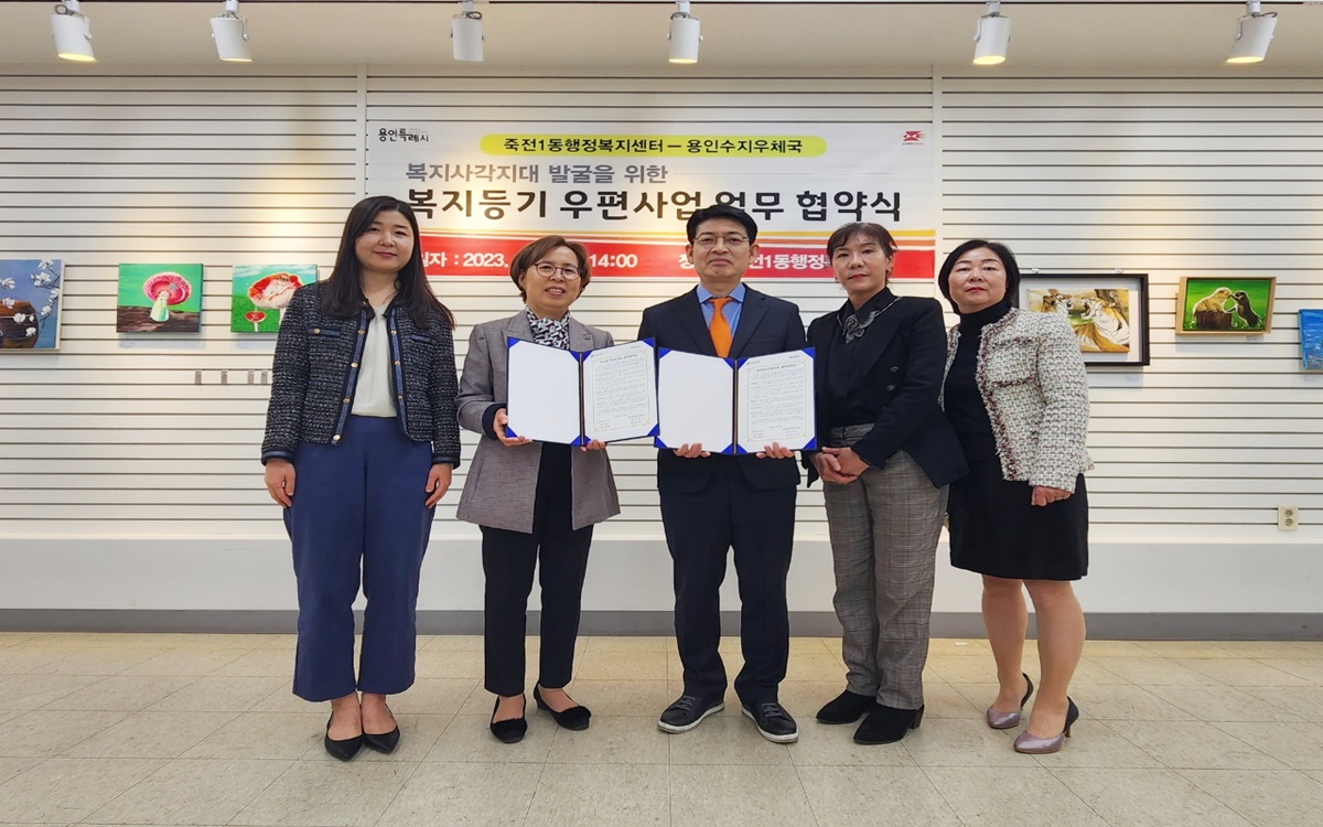 용인특례시 수지구 죽전1동은 지난 13일 용인수지우체국과, ‘복지사각지대 발굴 위한 등기우편사업 협약’을 맺었다.
