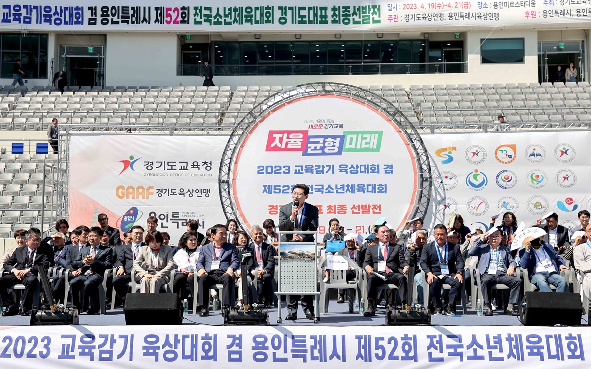 이상일 용인특례시장은 환영사를 통해 “오랜 시간 기다려 온 대회가 미르스타디움에서 개최된 것은 의미 있는 일”이라며 “임태희 경기도교육감과 체육계 관계자가 직접 응원하는 이 대회에서, 학생 선수 여러분의 꿈과 희망이 실현되고, 전국소년체육대회 대표 선수로 선발되기를 응원한다”고 참가 선수들을 격려했다.