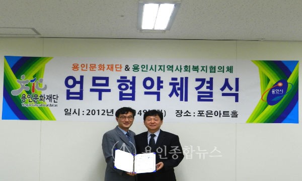 용인문화재단(상임이사 김혁수)은 14일 오전 11시 포은아트홀 대회의실에서 용인시지역사회복지협의체(공동위원장 양성필)와 문화나눔 실천을 위한 업무협약을 체결했다.