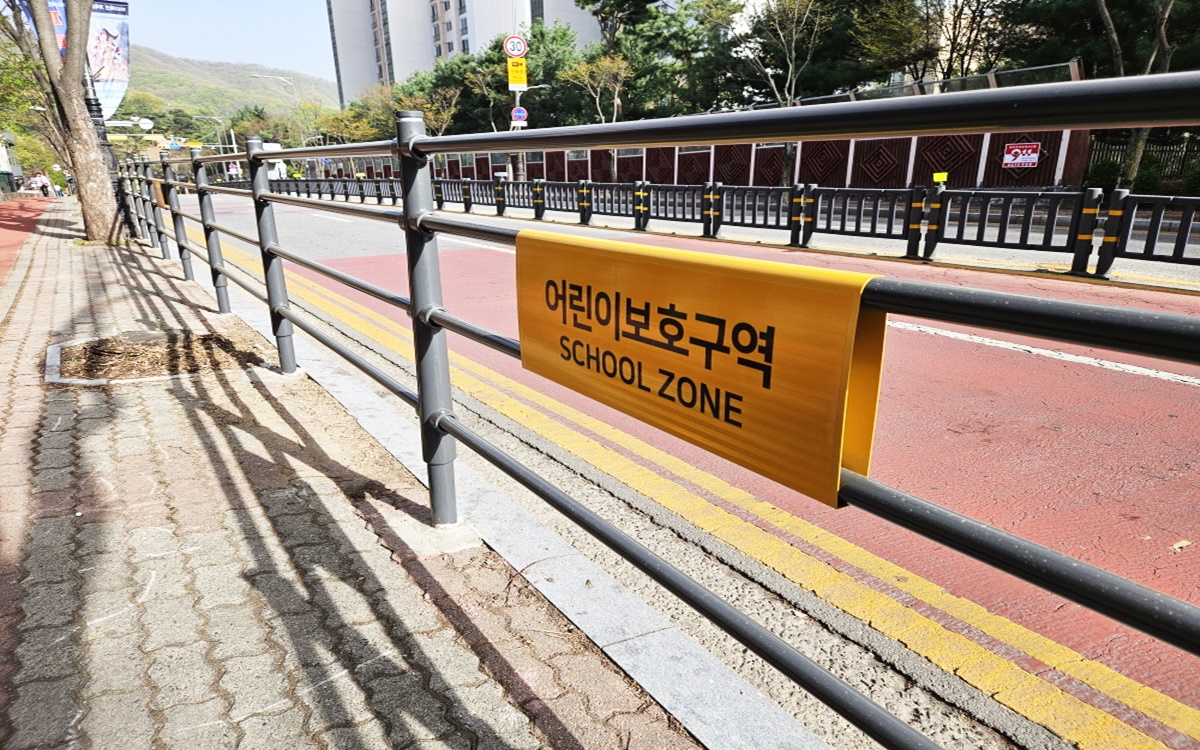 두 번째로 무단횡단을 막기 위한 디자인형 울타리(584m)를 죽전동 1397번지 대덕초등학교 일원 등 5곳에 설치했다. 이 울타리엔 ‘어린이 보호구역’이라는 문구가 쓰여있어 운전자는 물론 보행자들도 안전하게 통행하도록 환기한다.