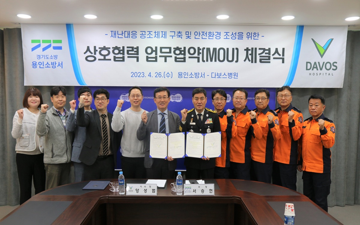 용인소방서(서장 서승현)는 26일 용인소방서에서, 영문의료재단 다보스병원과 용인특례시 안전 환경 조성 및 응급의료서비스 발전을 위한 업무협약(MOU)을 체결했다고 밝혔다.