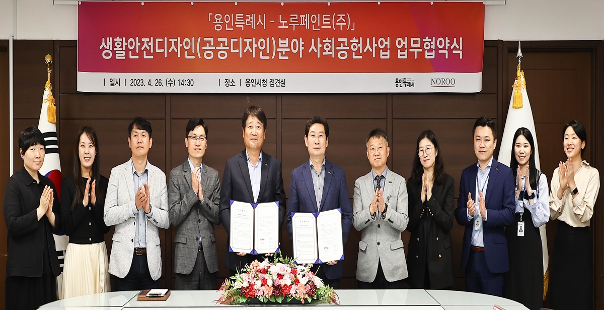 용인특례시(시장 이상일)와 ㈜노루페인트(대표 조성국)가 ‘생활안전디자인 분야 사회공헌사업 업무협약’을 26일 체결했다.