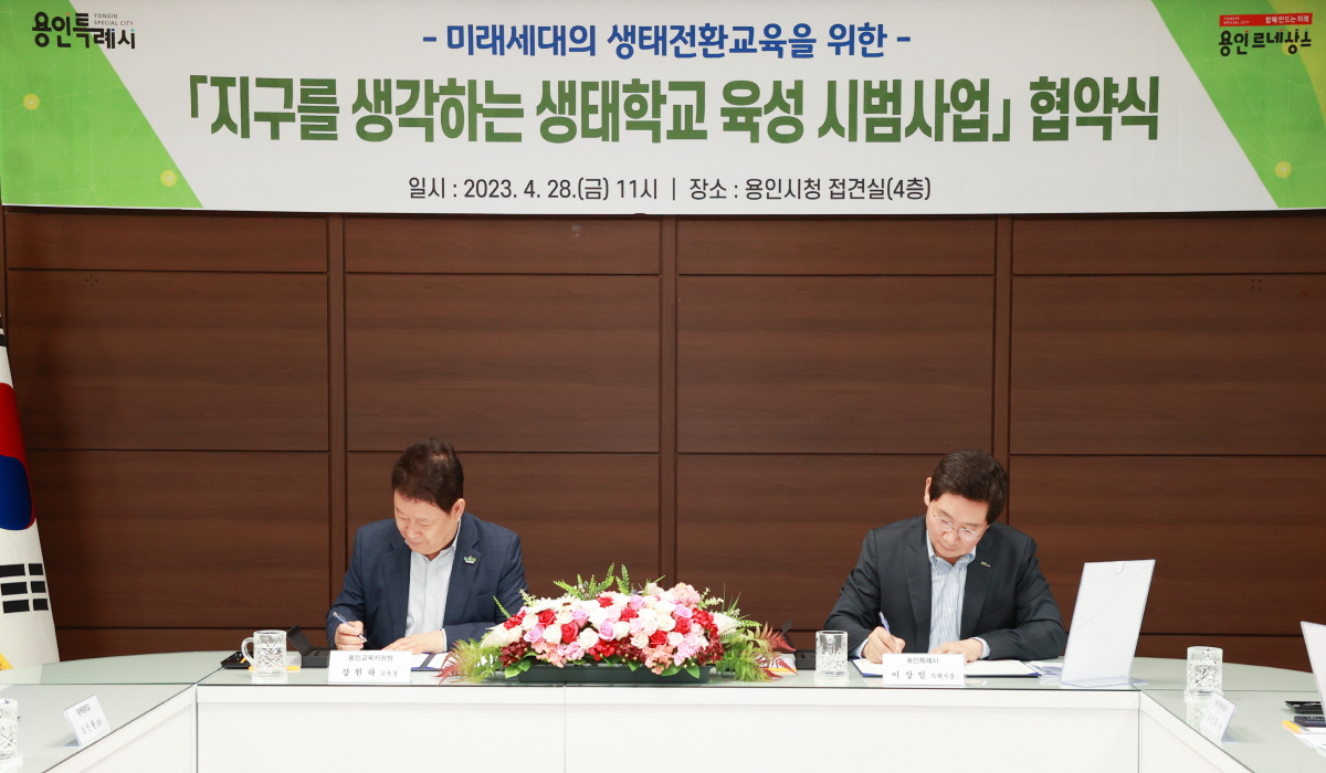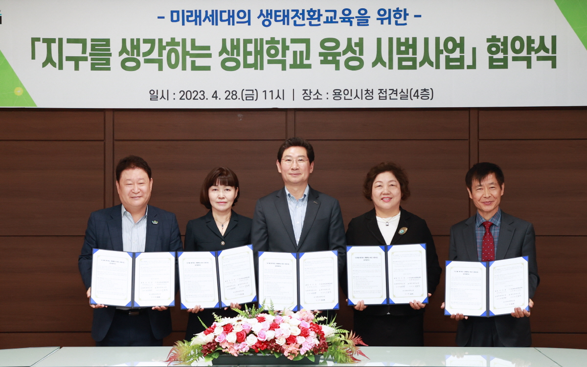 시는 28일 ‘지구를 생각하는 생태학교 육성사업’을 위해, 용인교육지원청과 동백중학교, 흥덕중학교, 능원초등학교와 함께 업무협약을 체결했다.