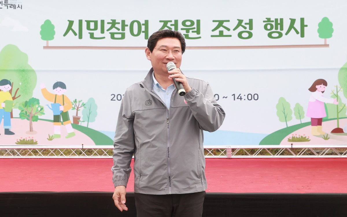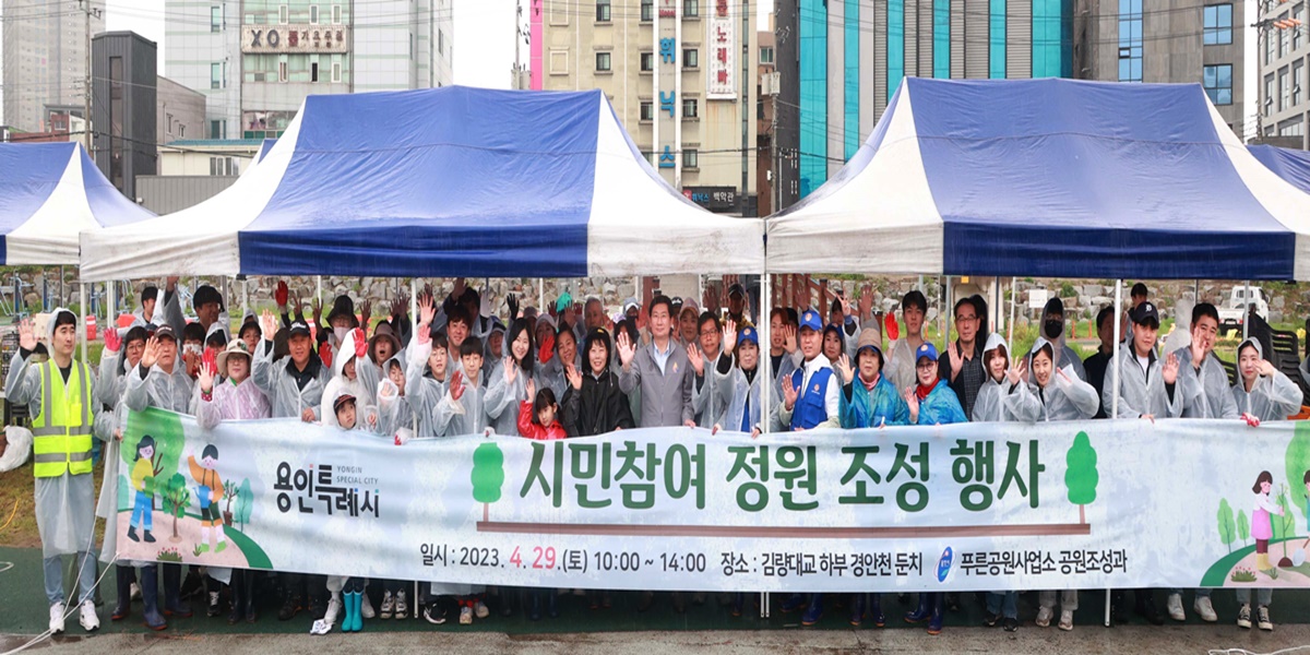 이상일 용인특례시장이 29일 처인구 마평동 김량대교 하부, 경안천 둔치에서 열린 시민참여 정원 조성 행사에서 참가자들에게 한 말이다.