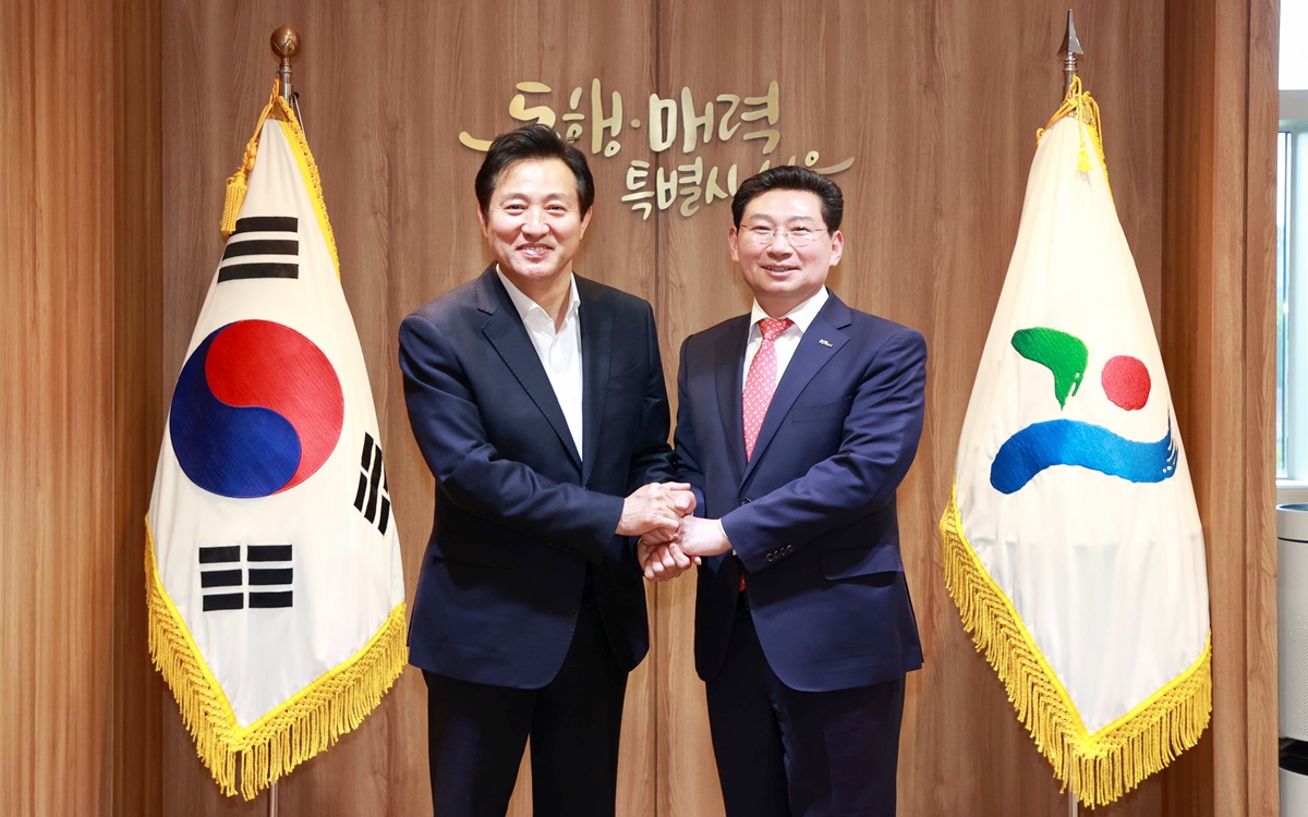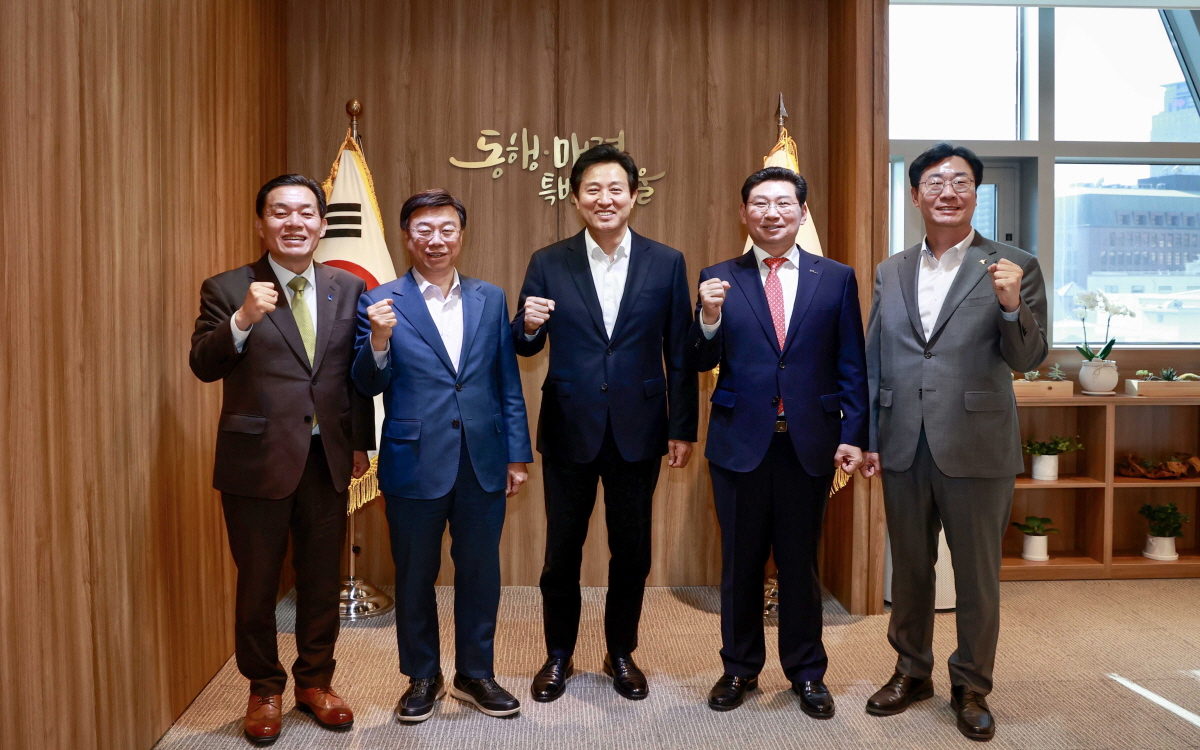 이날 오후 서울시청 6층 시장실에서 열린 오세훈 시장과의 간담회에는, 이 시장 외에 이재준 수원특례시장, 신상진 성남시장, 정명근 화성시장도 함께 했다. 대화의 자리는 이상일 시장이 주선으로 마련됐다.