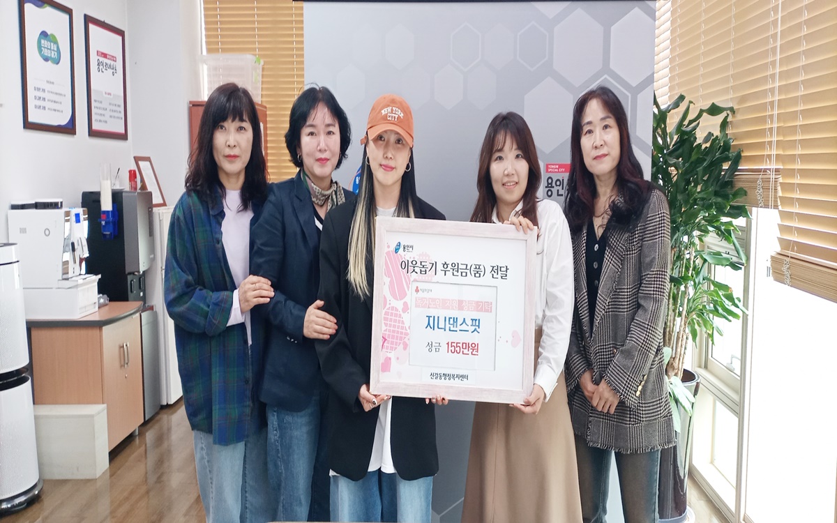 신갈동 소재 지니댄스핏(대표 김진희)은 저소득 홀로 어르신을 위해 써 달라며, 회원들이 바자회를 열어 마련한 성금 155만원을 기탁했다.