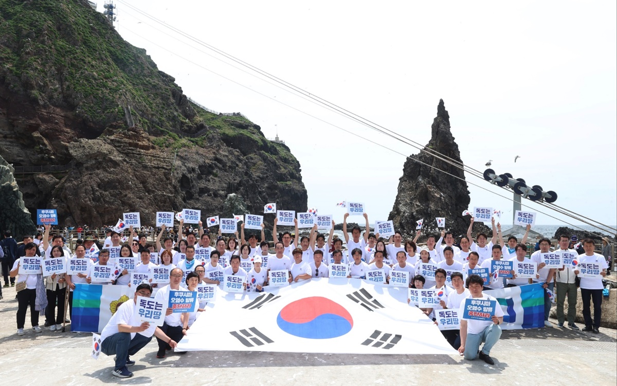 독도의 푸른 하늘에 “독도는 우리땅”과 “후쿠시마 오염수 방류 계획 철회하라!”라는 구호가 힘차게 울려 퍼졌다.
