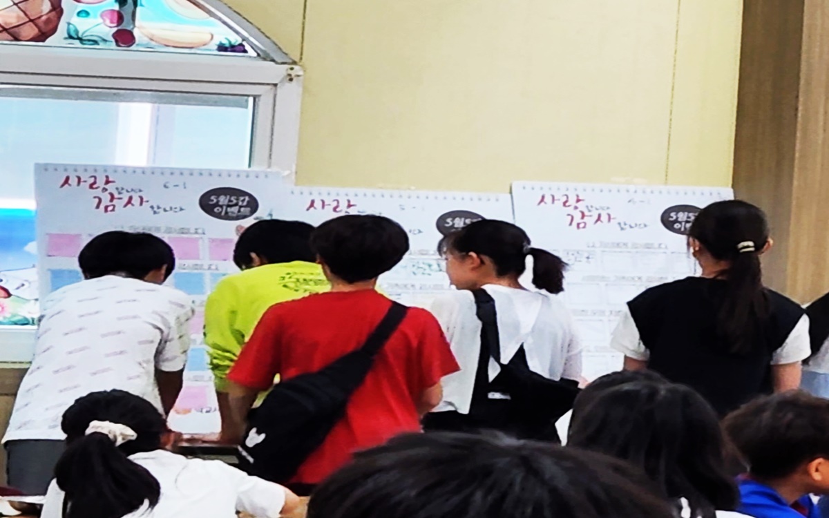 각 학급에서 가득 채워진 감사판은 6월 2일, 중앙 현관 및 급식실에 전시되어, 아이들이 서로의 감사 내용을 공유하며 감사의 폭을 키워나갔다.