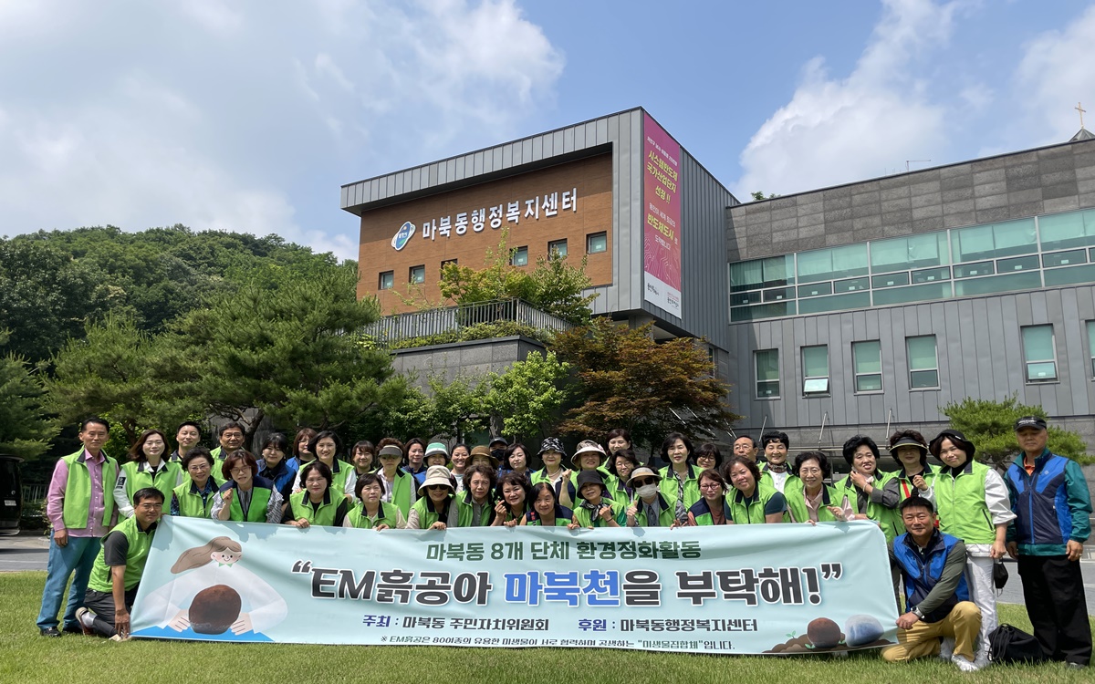 마북동 8개 단체 및 마북동행정복지센터 직원들은 마북천 하천에 EM흙공을 던지고, 하천 주변의 쓰레기를 줍는 등 환경정화 활동도 병행했다.