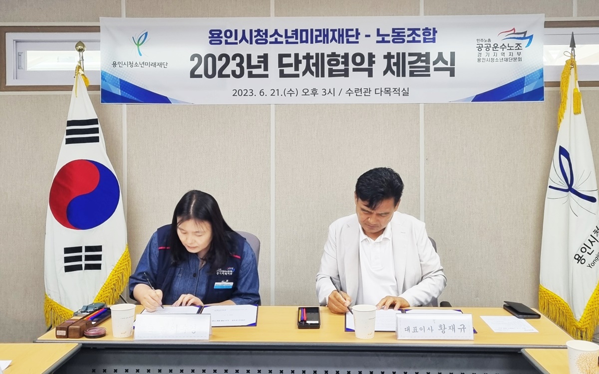 용인시청소년미래재단과 노조는 단체협약을 체결하고, 청소년의 건전한 성장지원과 상생의 직장문화 형성을 위해 힘을 모았다.