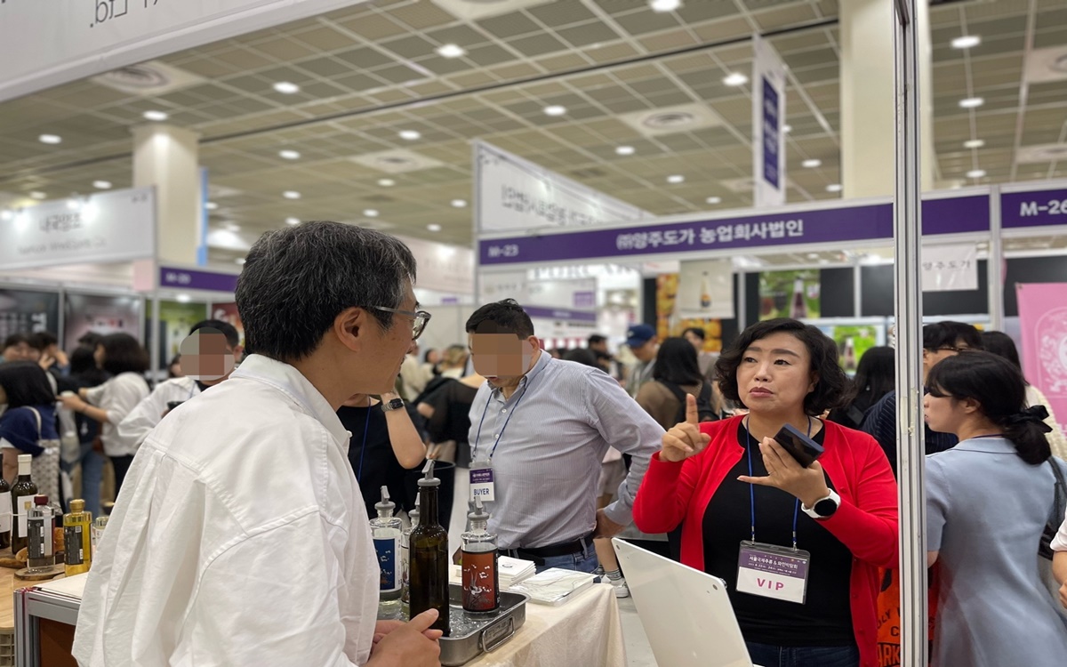 전통주 산업 활성화 정책 마련에 주력 중인 경기도의회 국민의힘 곽미숙(고양6) 대표의원이 22일, 서울 코엑스에서 열린 ‘서울국제주류&와인 박람회’를 찾아 경기도 내 전통주 참가업체들을 응원했다.