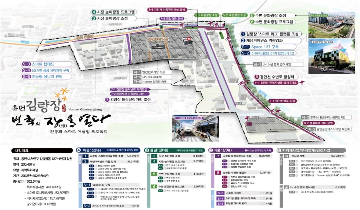 국도비 186억원을 포함 시비 466억원 등 총 652억원을 투입해, 4년간 용인중앙시장 일대의 대대적인 혁신이 시작됩니다.