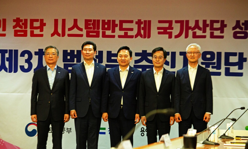 국토교통부(장관 원희룡)는 6월 27일 오후 3시 30분 경기 용인 삼성전자 기흥캠퍼스에서 제3차 「범정부 추진지원단」 회의를 개최해, 경기도(도지사 김동연), 용인특례시(시장 이상일), 기재부・산업부・환경부・농림부 등 관계부처와 용인 첨단 시스템반도체 국가산단을 성공적으로 조성하기 위한 지원전략을 논의하였다고 밝혔다.