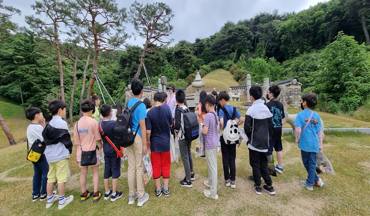 1회 차 교육인 ‘넌 어느 시대에서 왔니’는 지역 역사문화유적지인 포은 정몽주 묘역을 탐방하며, 능원리 지명에 얽힌 흥미로운 이야기를 듣고, 고려시대 말 충신이었던 정몽주의 단심가를 통해, 나라에 대한 충절과 지조를 배우며, 정몽주와 이방원이 주고받은 시조에서 조상의 지혜를 엿보는 시간을 갖는다.