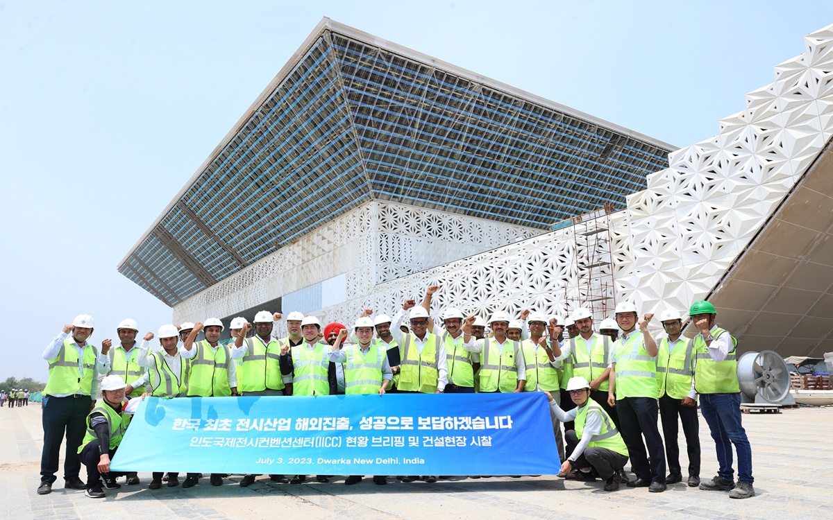 인도국제전시컨벤션센터는 총면적 30만㎡ 규모의 인도 등 남아시아 최대규모 전시장으로, 중국 전시장 4개에 이어 아시아 5위 규모다. 총공사비 약 4조 원의 인도 정부 핵심 마이스(MICE. 국제회의·전시회·박람회 등을 열어 대규모 관광객을 유치하는 산업) 프로젝트로, 전체 30만㎡ 중 1단계 12만㎡(전시장 6만㎡, 회의실 6만㎡)가 오는 10월 개장을 앞두고 있다.