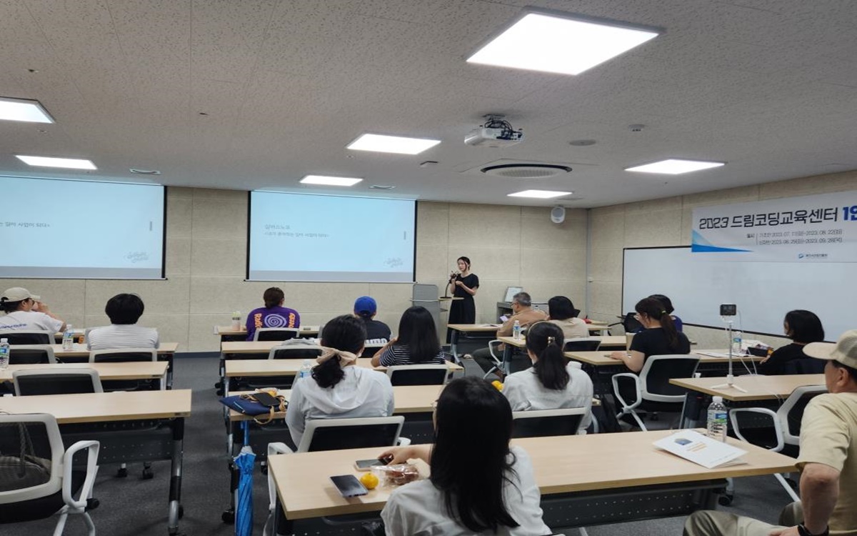 「2023년 1인 크리에이터 양성과정」은 운영 기간 중 8월 첫째 주를 제외한 매주 화, 목요일 오전 10시부터 14시까지 동백문월드에 위치한, 드림코딩교육센터에서 이론과 실습을 병행하며 기본과정을 진행한다.