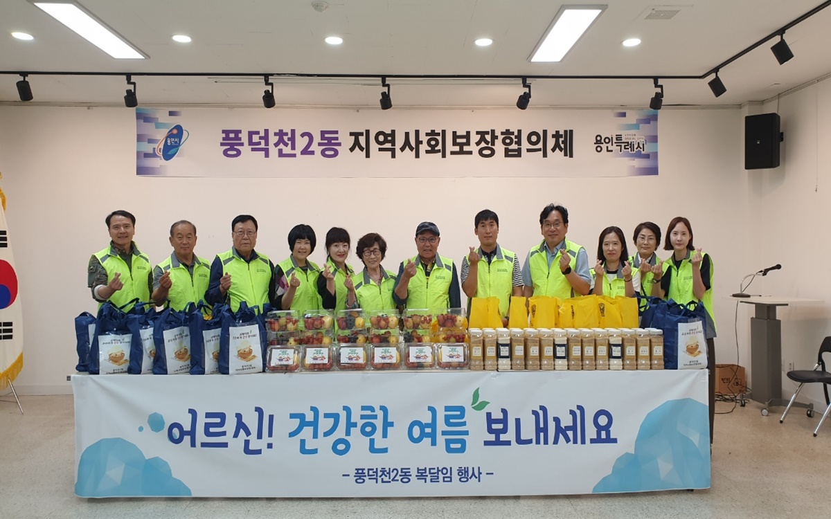 수지구 풍덕천2동 지역사회보장협의체(민간위원장 이원구)는 저소득 어르신 30가구에 삼계탕과 과일 등을 담은 꾸러미를 전달했다. 삼계탕과 과일은 수지환경센터가 기탁한 후원금으로 마련했다.