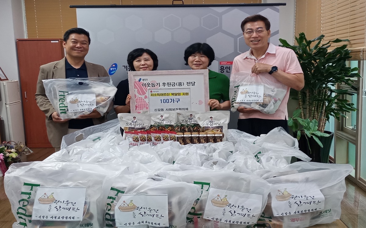 신갈동 지역사회보장협의체(민간위원장 이성근)는 관내 저소득 어르신 100가구에 간편 삼계탕 2팩, 밑반찬 2종, 열무김치, 건강 음료 등을 전달하고 안부를 살폈다. 건강음료는 한국야쿠르트 신갈점에서 후원했다.