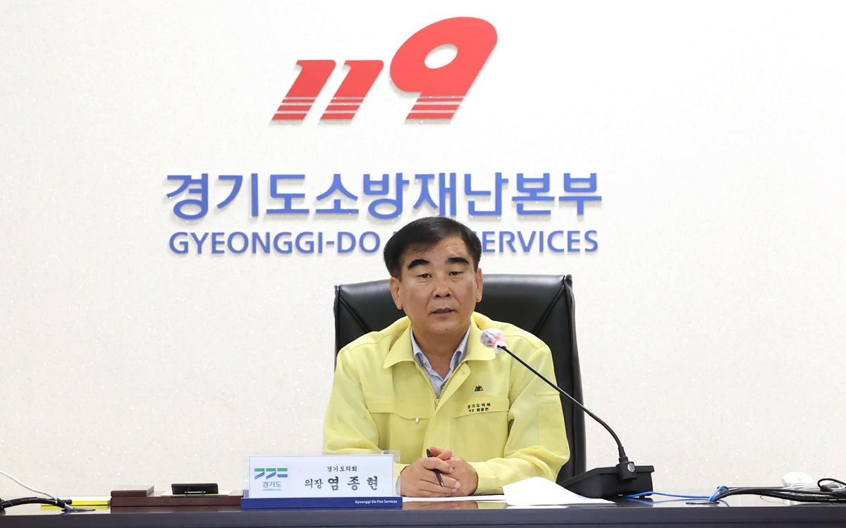 염 의장은 “지난 15일 충북 오송 지하차도 침수사고 등으로, 경기도민 세 분이 희생된 만큼, 도내 지하차도 및 침수우려 도로, 산사태․급경사지, 반지하 취약시설 등에 대한 점검과 대응에 만전을 기해달라.”면서 “여러분의 노고가 어디선가 위태로움에 처해 있을, 도민의 생명과 안전을 지킨다는 사명감을 가지고, 도민 한분 한분이 내 가족이라는 생각으로 근무에 임해달라.”고 말했다.