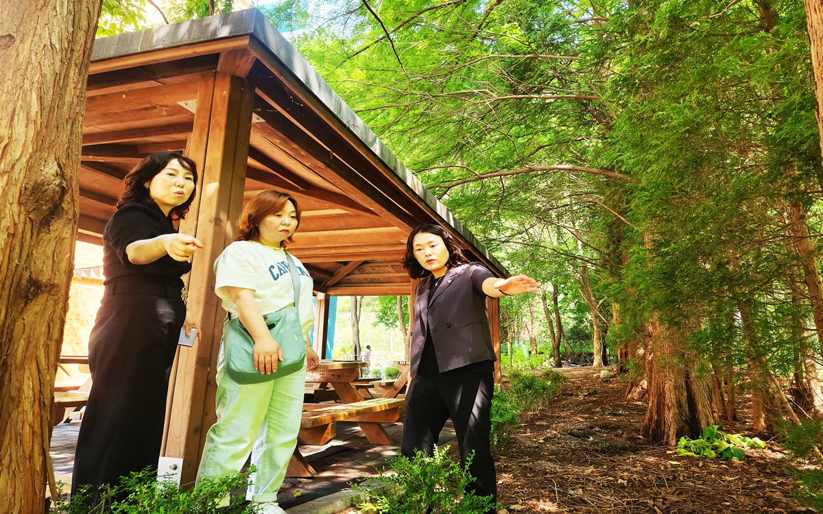 신나연 의원은 갈곡초등학교 뒤편에 자리한, 강남근린공원의 급경사면을 집중적으로 살펴보며, 집중호우 시 발생할 수 있는 토사 유출 피해 등에 대한 철저한 사전 대비를 강조했다.