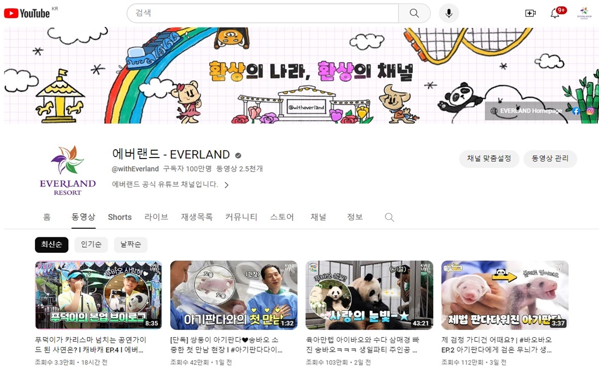 에버랜드 유튜브 채널에는 지난 2016년 판다월드가 오픈했을 때부터 2020년 국내 최초의 아기 판다인 푸바오가 태어나 성장하는 과정과 최근 쌍둥이 판다가 탄생하기까지 550여 편의 다채로운 판다 영상이 누적돼 있어 국내외 팬들의 정주행, 몰아보기 시청 등이 이어지고 있다.