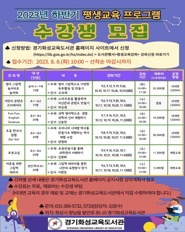 프로그램 신청은 8일 오전 10시부터 경기화성교육도서관 홈페이지(https://lib.goe.go.kr/hs)에서 가능하다.