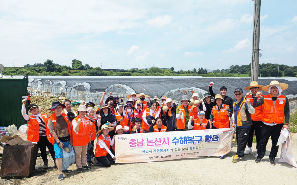 (재)용인시자원봉사센터(이사장 이상일)는 지난28일 용인시협업기관 ▲용인도시공사 ▲용인시정연구원 ▲ 용인문화재단 ▲ 용인청소년미래재단 5개의 협업기관과 자원봉사단체 11단체(50여명)가 함께 충청남도 논산시 광석면에 폭우로 큰 피해를 입은, 메론 하우스 농가를 찾아가 용인 민.관 연합 수해복구 봉사활동을 실시했다.